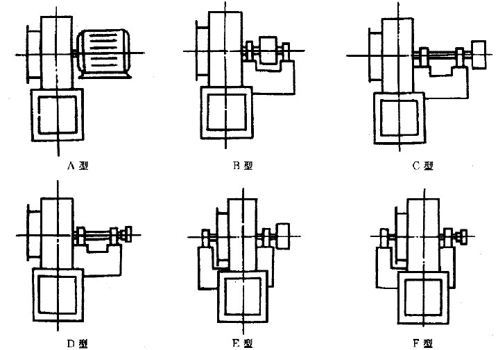 2、聯(lián)軸器傳動(圖中D型)。就是電動機與風機用聯(lián)軸器聯(lián)接驅動,電機的轉軸與聯(lián)軸器一端相連,聯(lián)軸器的另一端與風機葉輪相連,可以形象的聯(lián)軸器是電機和葉輪的媒介,通過它的連接,使風機達到旋轉通風的效果。